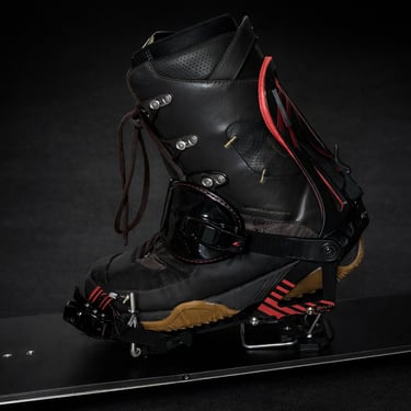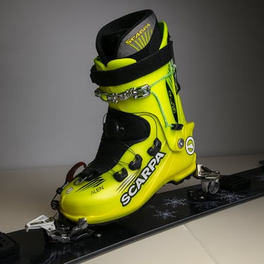 Si a esto le sumamos botas hiperligeras y con buen rango de movimiento, como el modelo Alien de Scarpa, la combinación se vuelve muy interesante. Tienes una bota dura, pero con una movilidad en tobillo muy buena en subida y una estructura suficientemente sólida para descender con control usando una fijación de placa específica para snowboard.